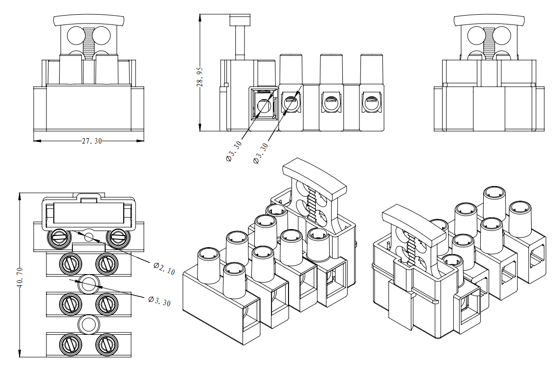 | 連接容量 | 實(shí)芯線 | 2.5-4.0mm2 | 0.5-4.0mm2 |