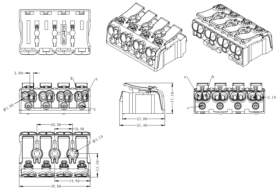 | 工廠側(cè) | A孔 | 實(shí)芯線 | 0.5-2.5mm2 | AWG 14-20 |