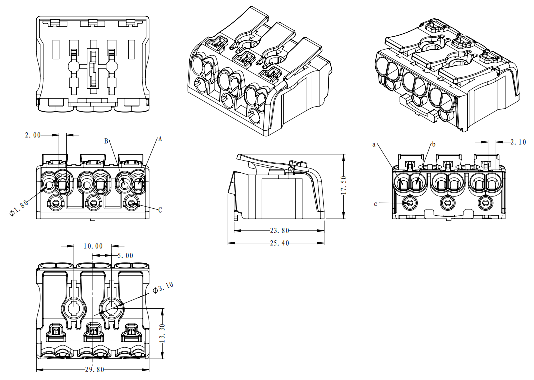 | 工廠側(cè) | A孔 | 實(shí)芯線 | 0.5-2.5mm2 | AWG 14-20 |