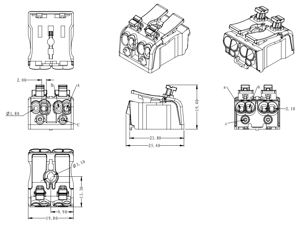 | B孔 | 實(shí)芯線 | 0.5-1.5mm2 | AWG 16-20 |