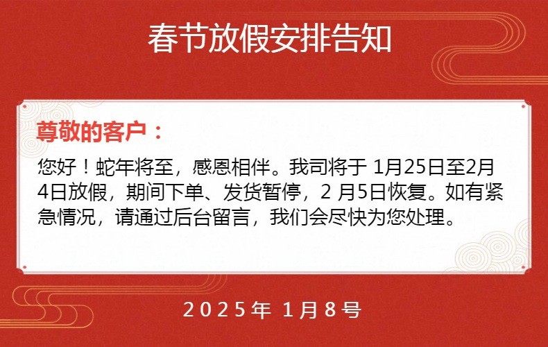 創(chuàng)藝電器2025年春節(jié)放假安排